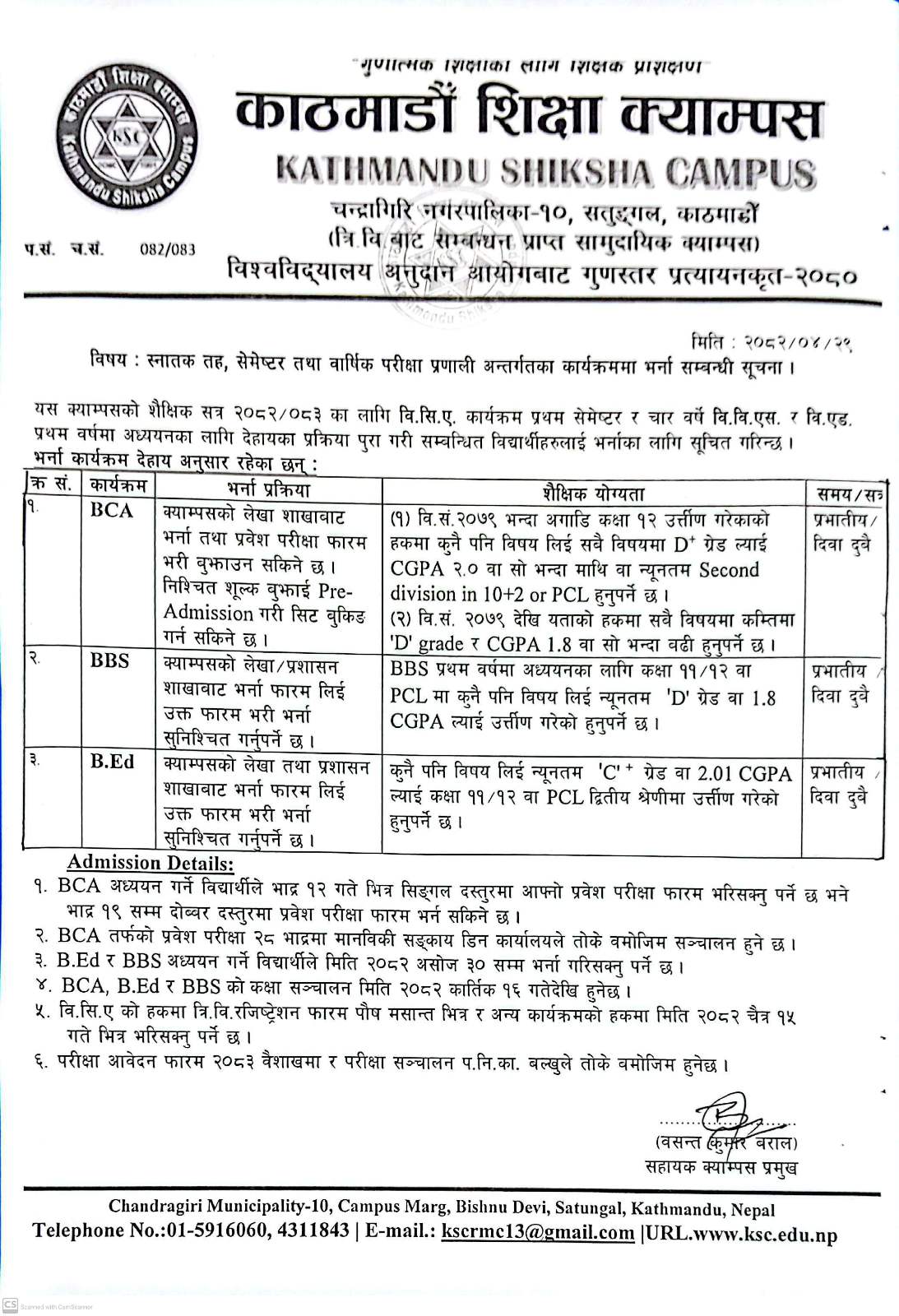 Admission Open in BCA, BBS and B.Ed